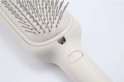 本体の柄の部分にあるシルバーパーツを握ると、髪に滞留していたイオンが手に流れ、パサつきや静電気を抑えます。とかすたびにしっとりしなやかにまとまります。