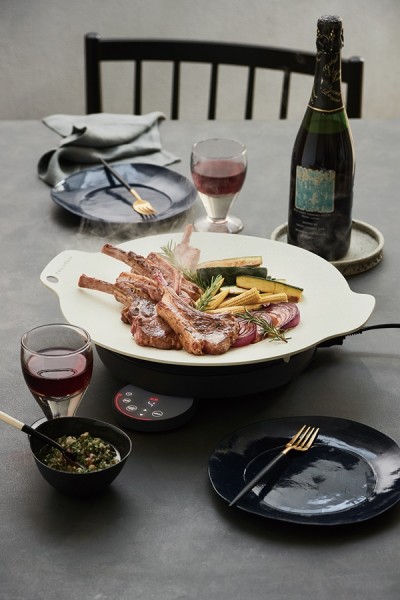 大きなプレートで多様な食材を豪快に調理ができるグリドルプレートとIH ヒーターを組み合わせて、今までにない食卓での楽しみを実現します。